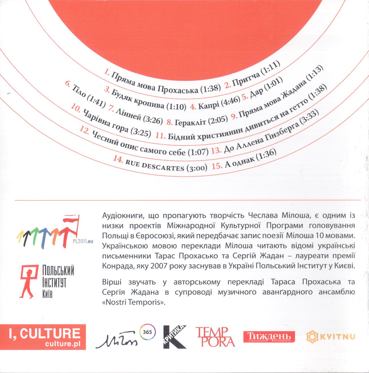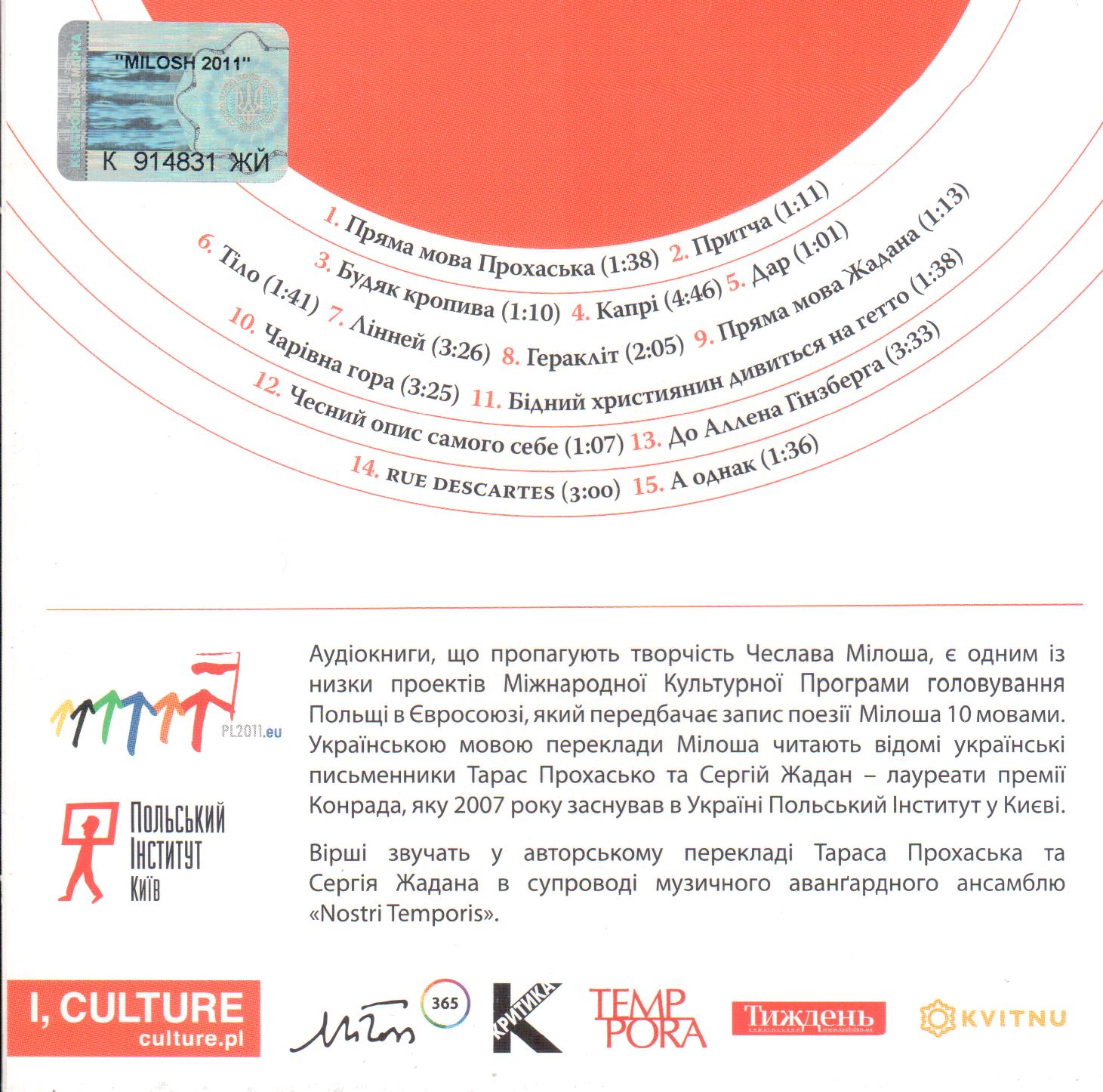 Index of /audiobooks_international/Тарас Прохасько і Сергій Жадан читають вірші Чеслава Мілоша (2011) [FLAC]/covers & booklet/